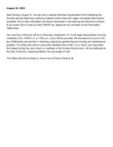 Announcements for August 24, 2025